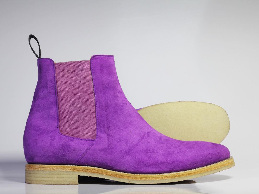 Handmade Men's Purple Ankle High Chelsea Suede Boot