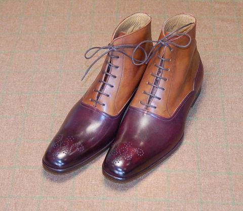Handmade Purple Brown Boot, Men's Leather Ankle High Lace Up Boot