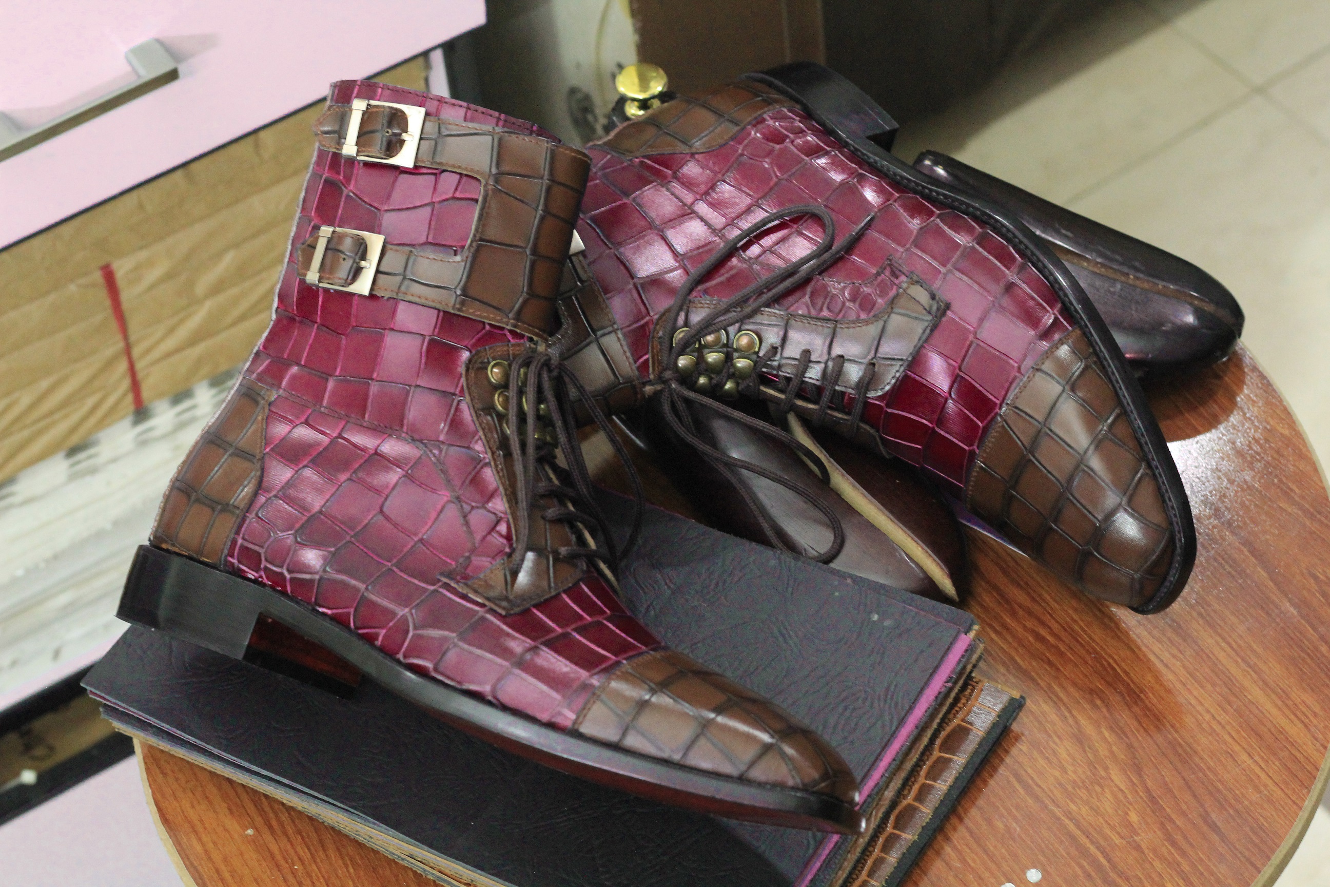 Handmade Alligator Skin Texture Two Tone Leather Boot For Men