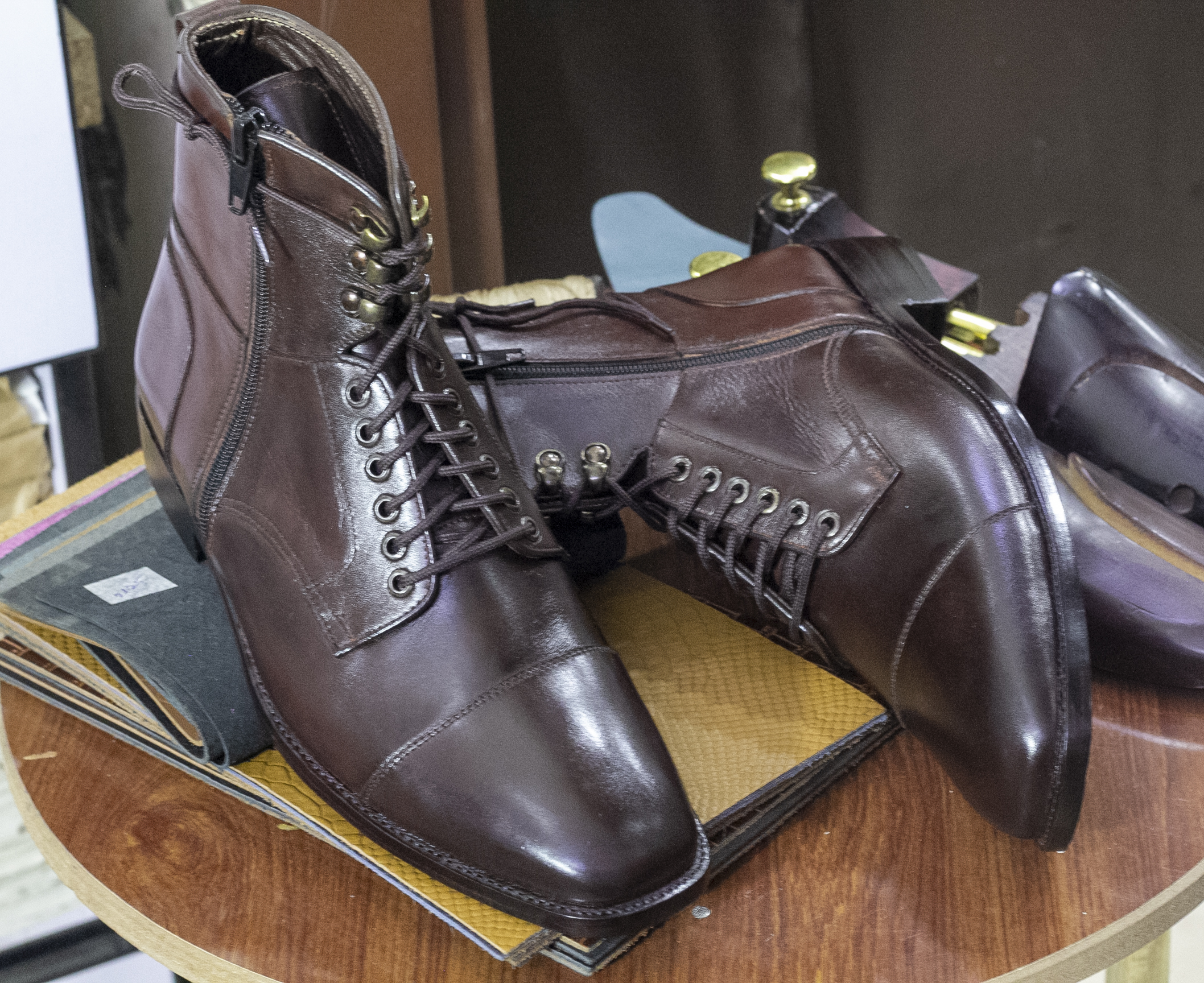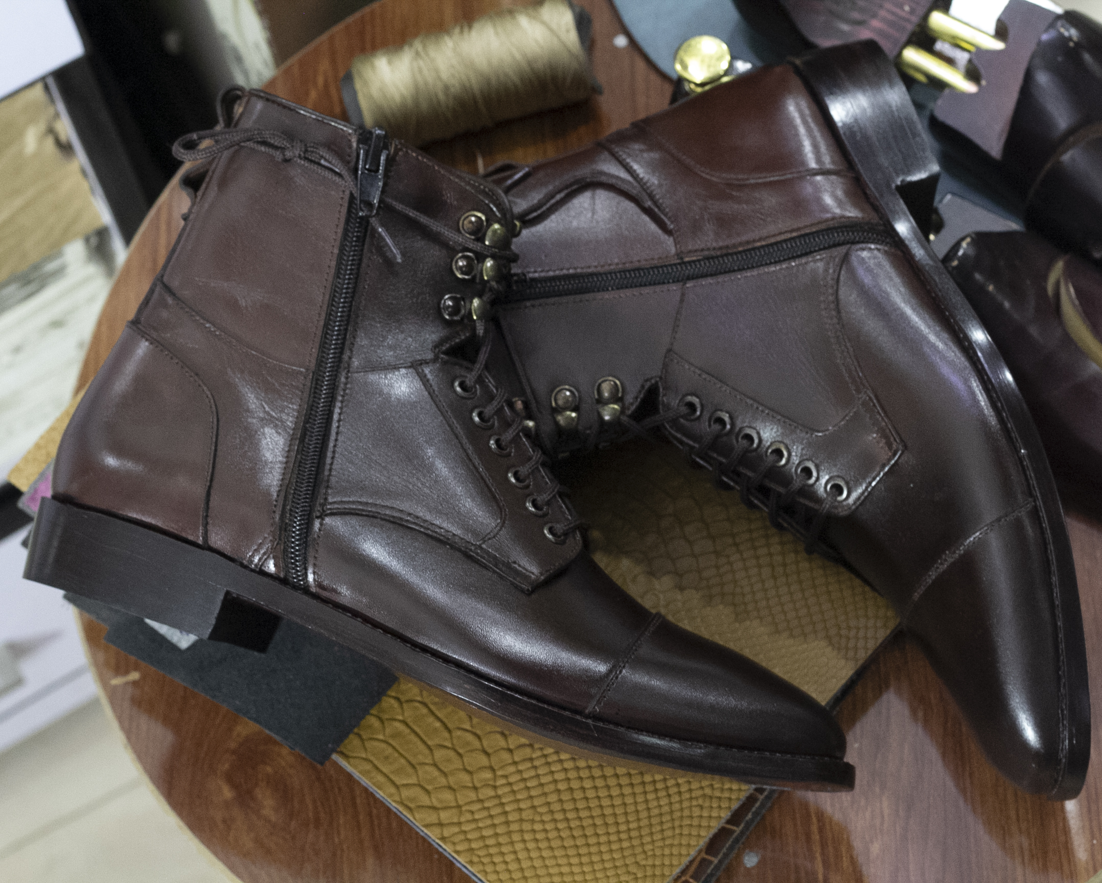 Men's Ankle High Side Zipper Lace Up Brown Leather Boot