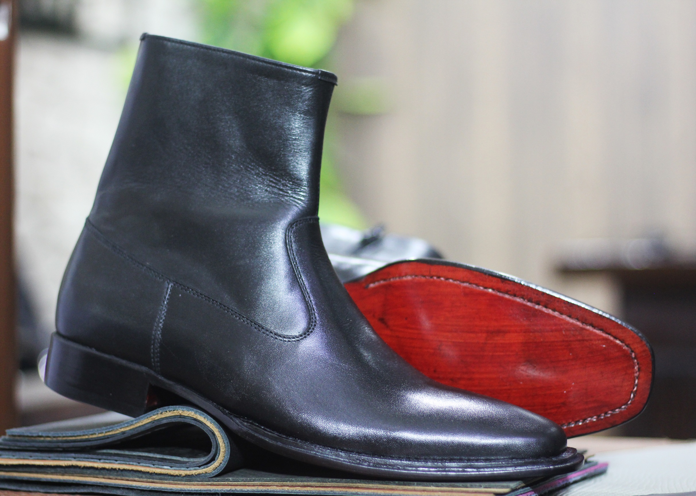 Handmade Ankle High Black Leather Side Zipper Chelsea Boot For Men