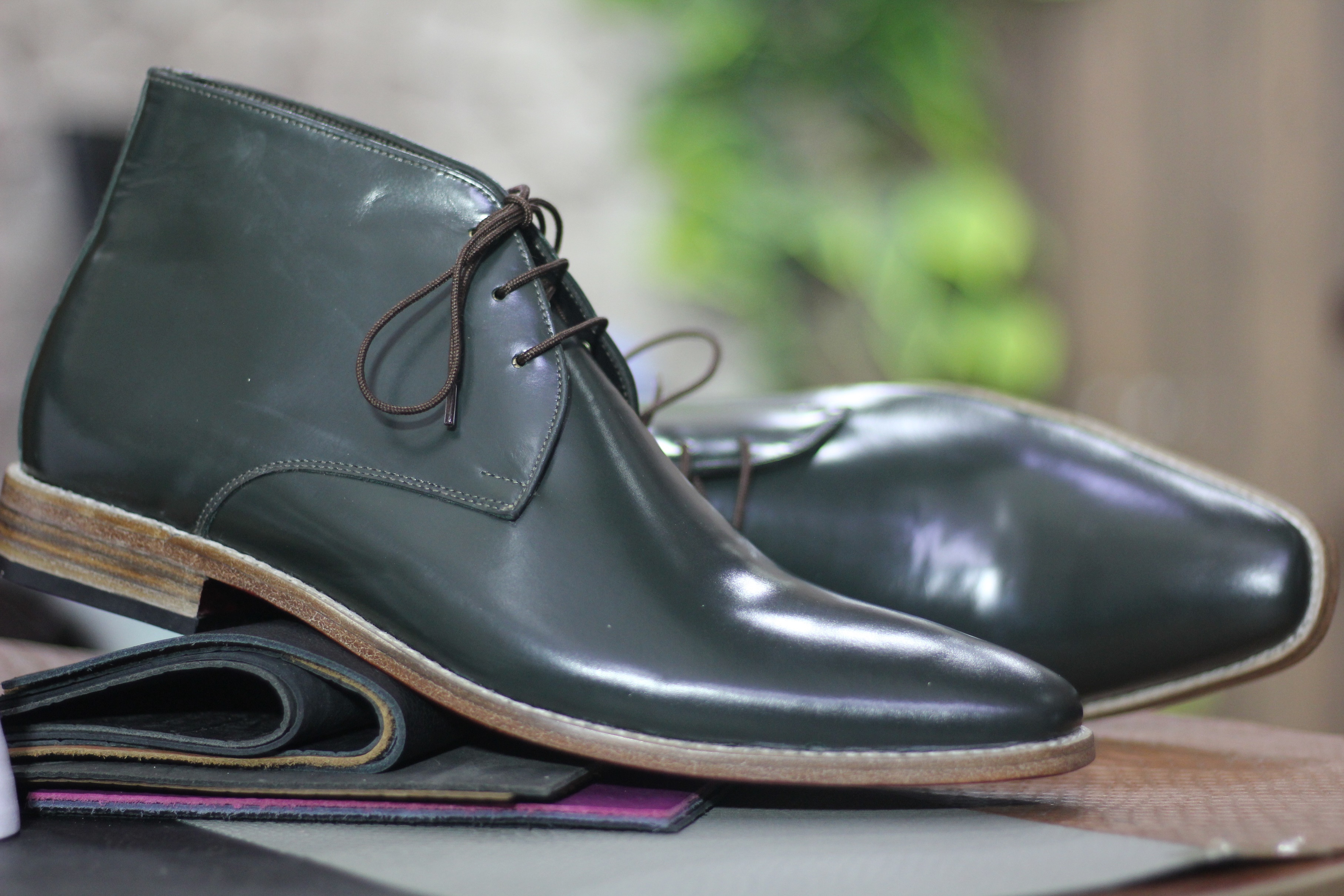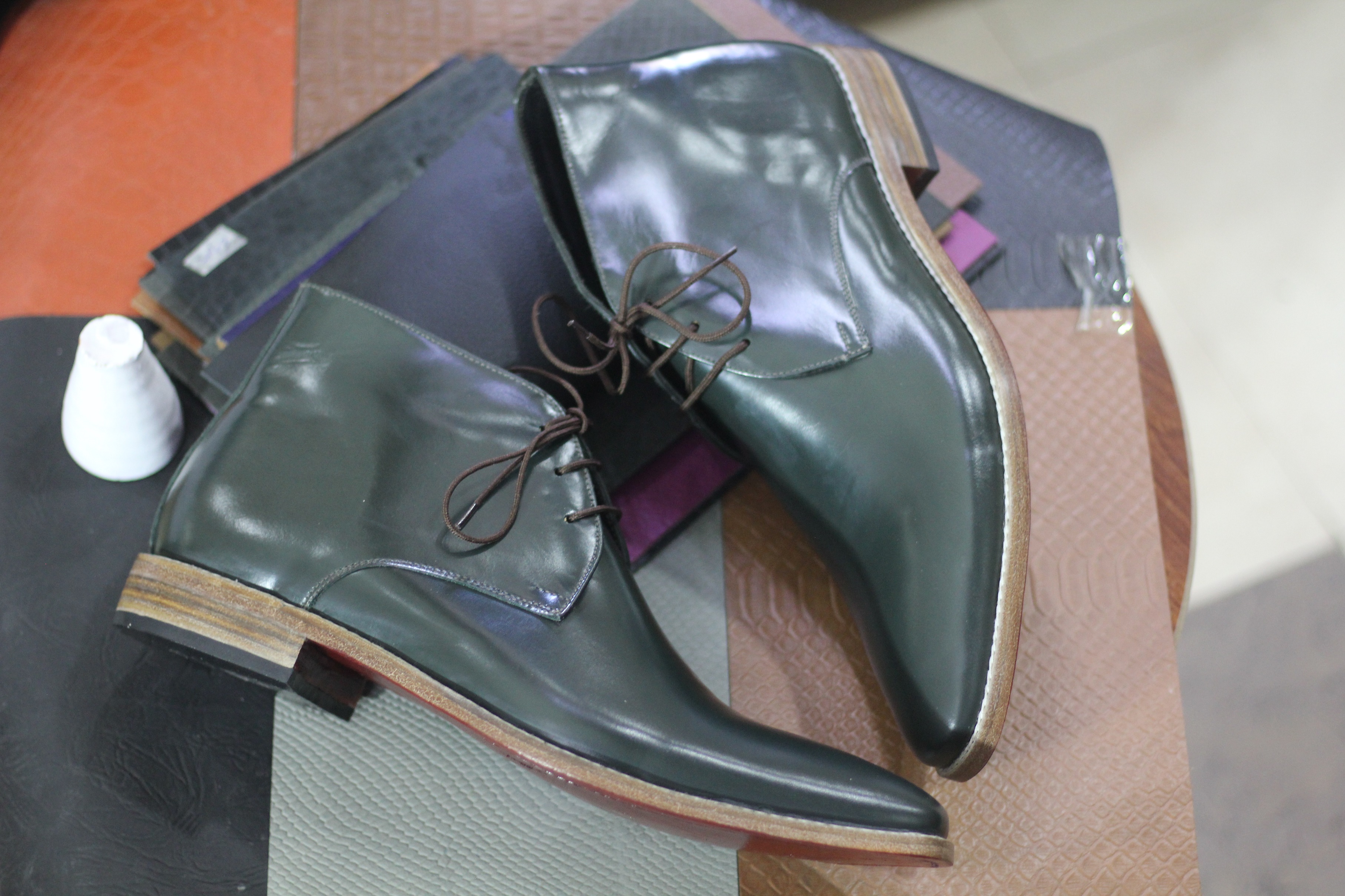 Men's Half Ankle Green Lace Up Chukka Leather Boot