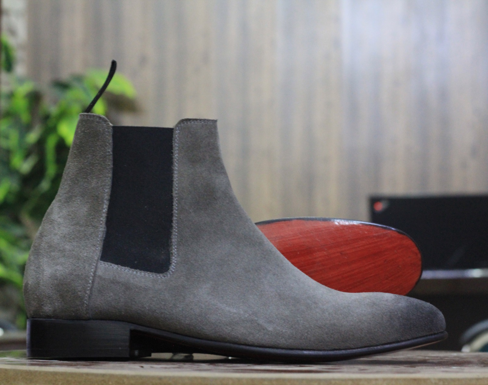 Men's Bespoke Grey Color Chelsea Style Hand stitched Suede Designer Boots