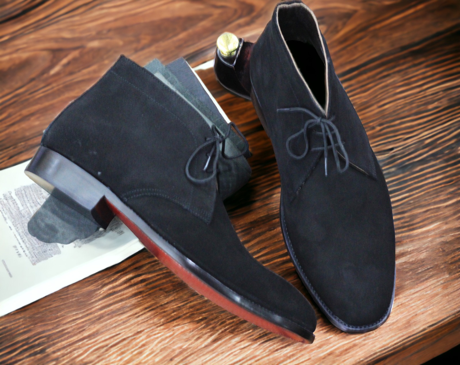 Black Color Chukka Style Lace Up Genuine Handmade Suede Boot for Men's