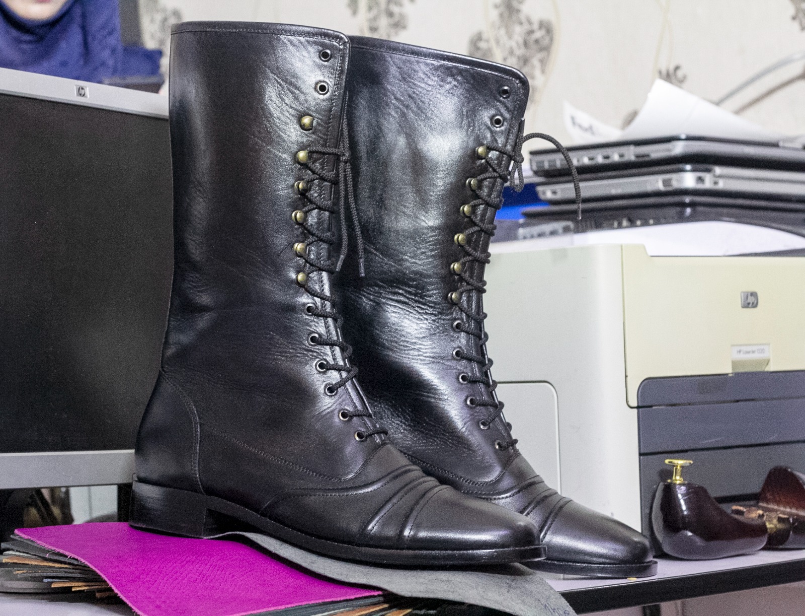 Ankle High Genuine Handmade Leather Cap Toe Lace Up Black Color Men's Designer Boots