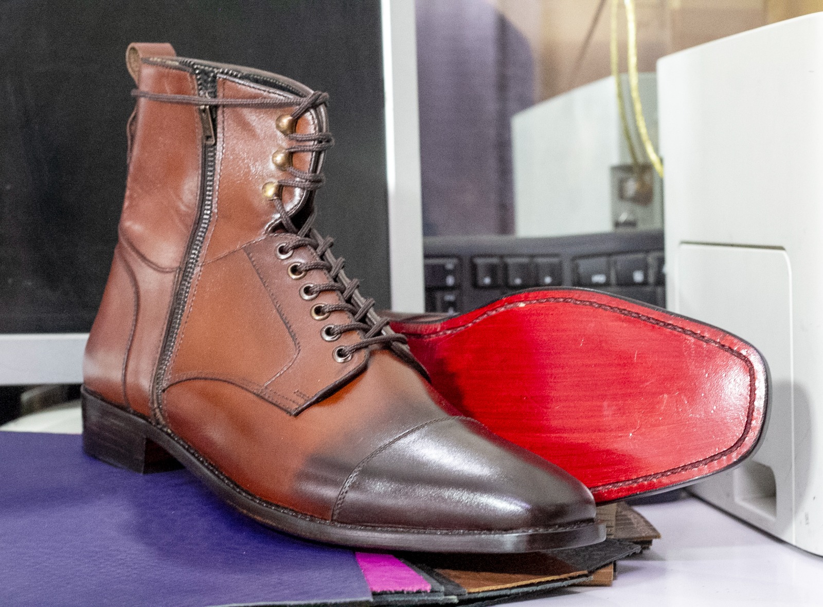Handmade Leather Burgundy Men's Lace up Cap toe Boot