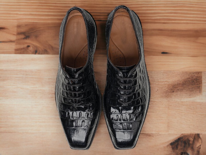 Handmade Men's Black Alligator Print Laceup Shoes Leather