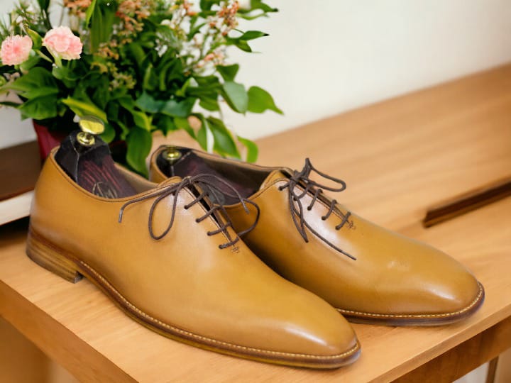Handmade Men's Brown Leather Lace Up Plan Toe Formal Shoes