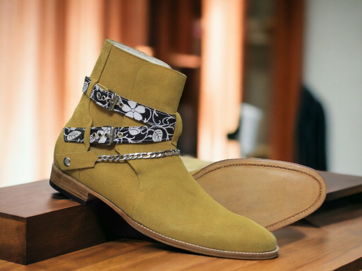 Beige Jodhpurs Stylish Designer Handmade Ankle Suede Boots For Men's