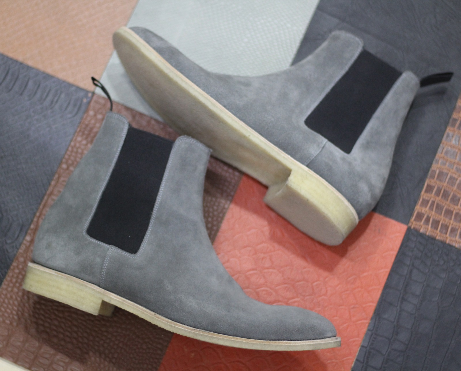 Handmade Men's Gray Suede Chelsea Fashion Ankle Boots
