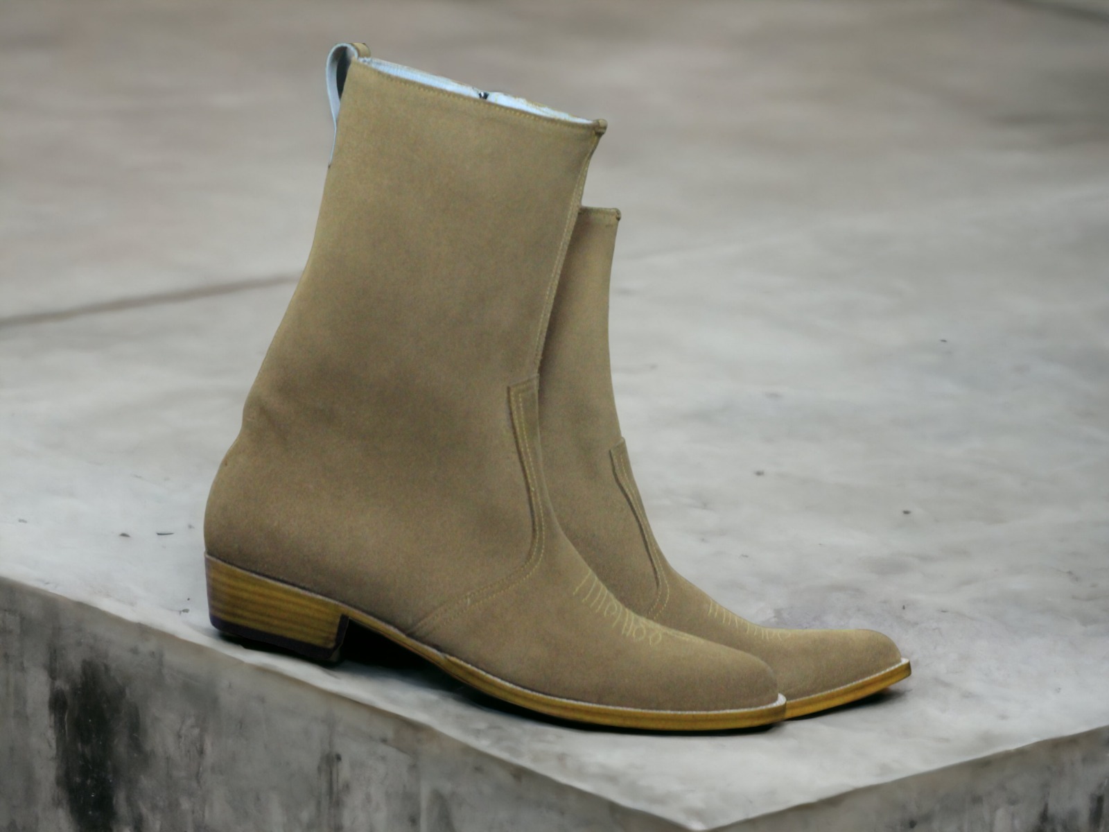 Handmade Men's Brown Suede Zipper High Ankle Boots