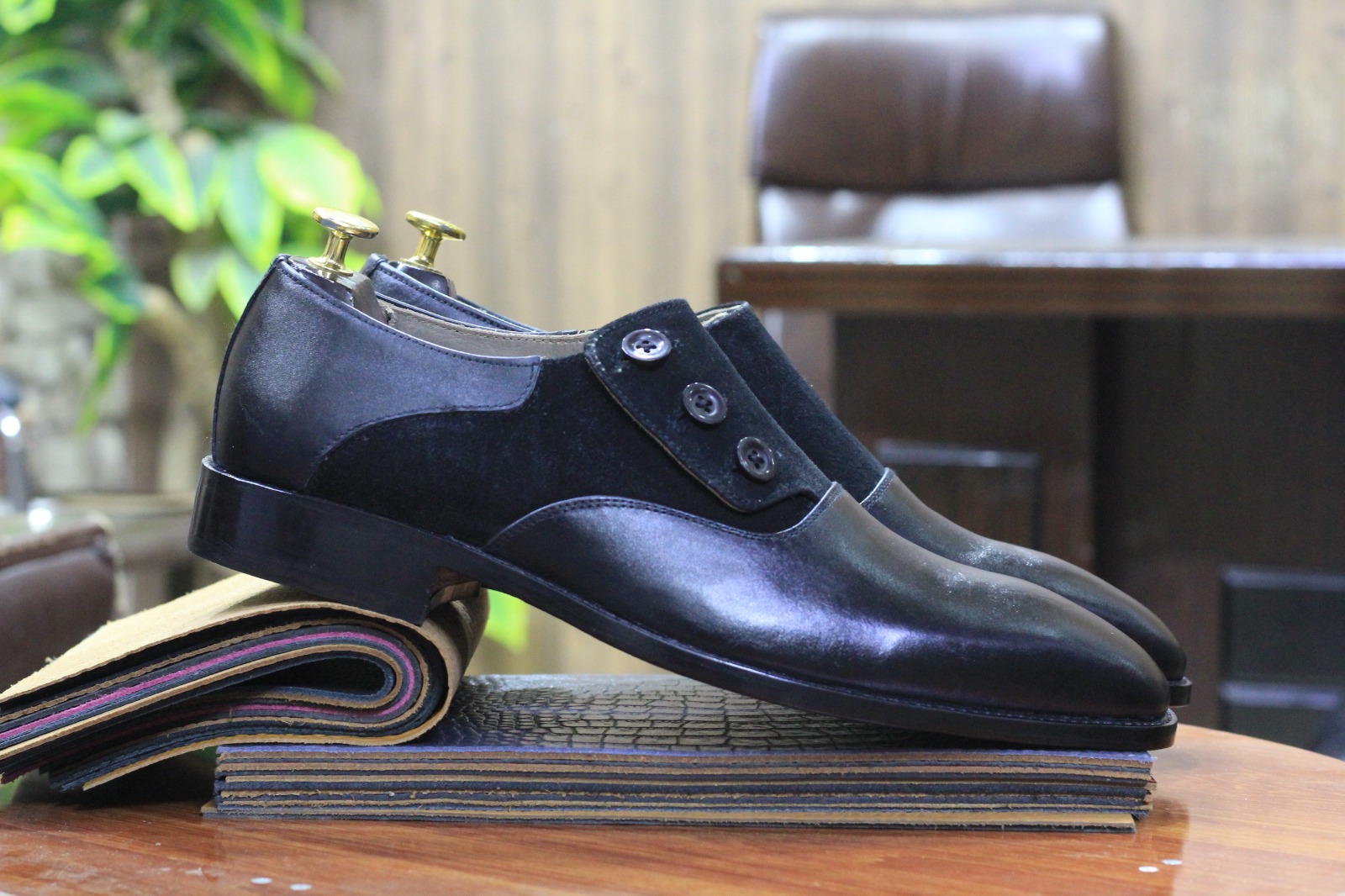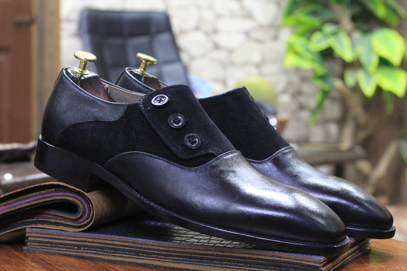 Handmade Men's Two Tone Leather & Suede Button Dress Shoes
