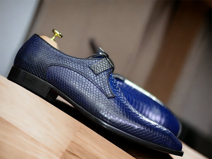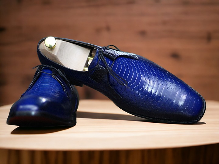 Handmade Men's Blue Python Leather Laceup Dress Shoes