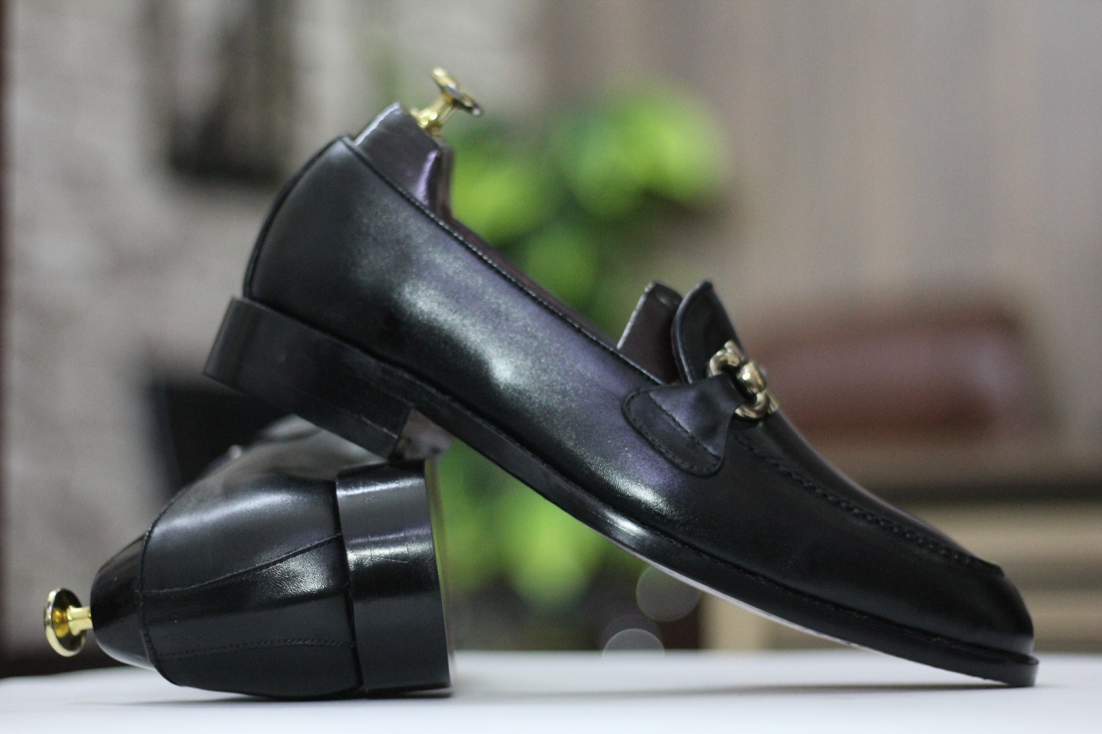 Handmade Men's Black Leather Horse Bit Slip on Loafer Shoes