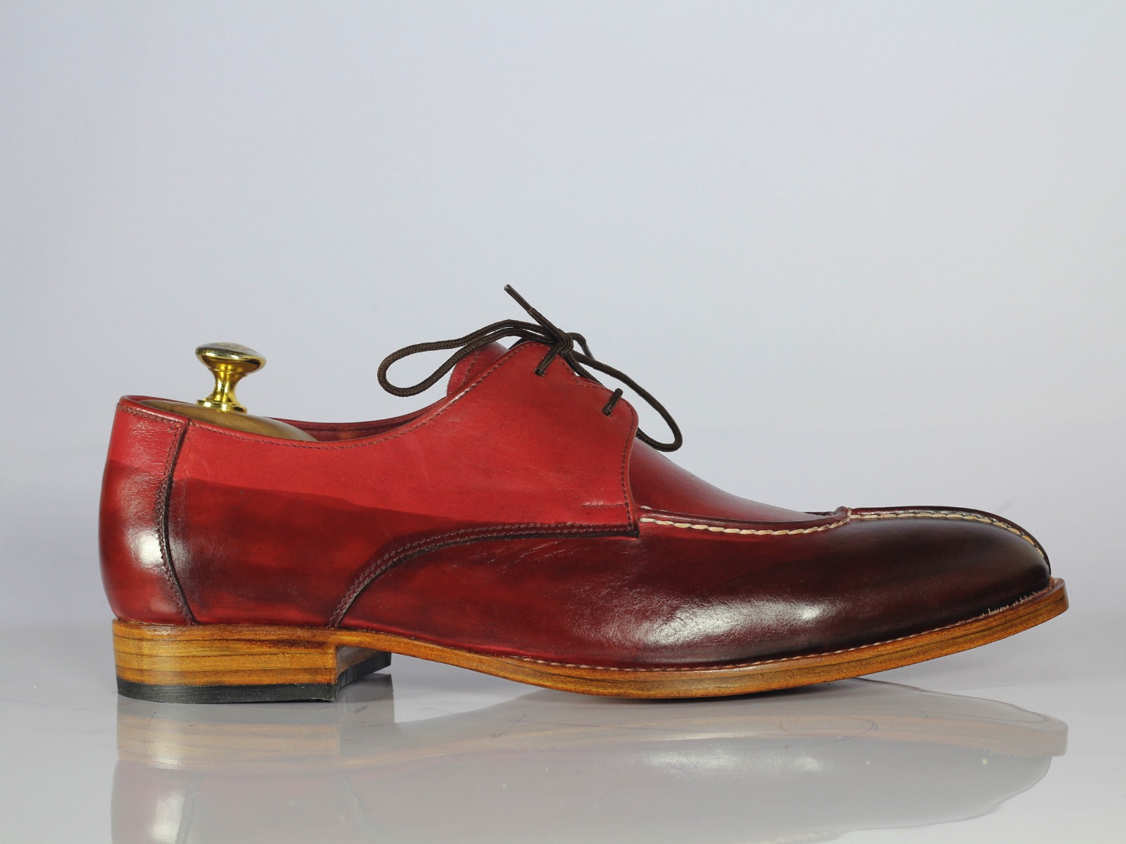 Men's Burgundy Handmade Leather Split Toe Lace Up Dress Shoes