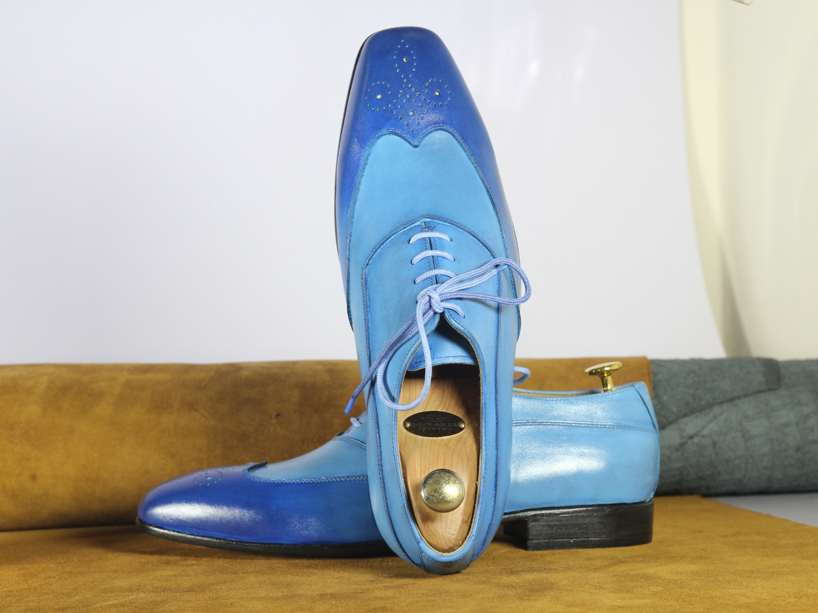 Handmade Two Tone Leather Mens Lace Up Wing Tip Brogue Toe Office Shoes
