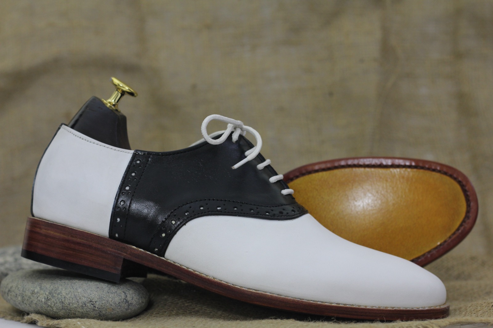 Men's Two Tone Leather Lace Up Handmade Fashion Office Shoes