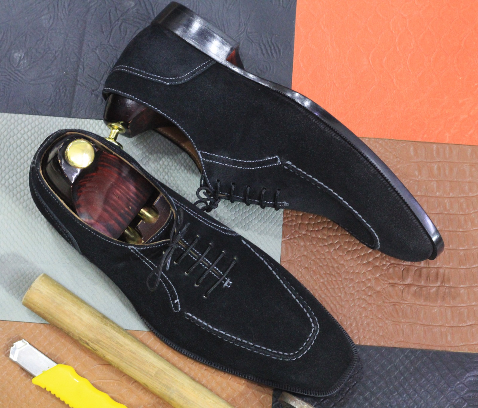 Handmade Fashion Black Suede Lace Up Handmade Dress Shoes