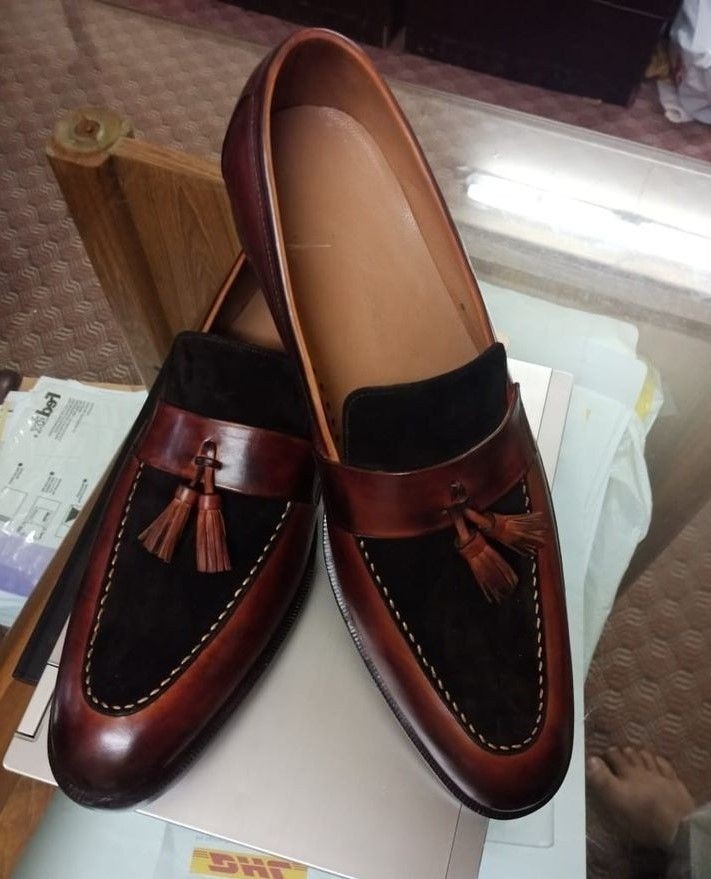 Handmade Men's Two Tone Leather & Suede Tussle Loafer Shoes