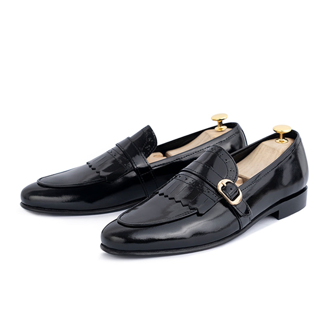 Handmade Men's Black Leather Fringe Singal Monk Buckle Office Shoes