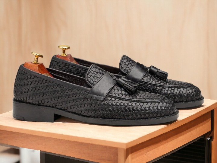 Handmade Fashion Men's Black Python Leather Penny Tussle Loafer Shoes
