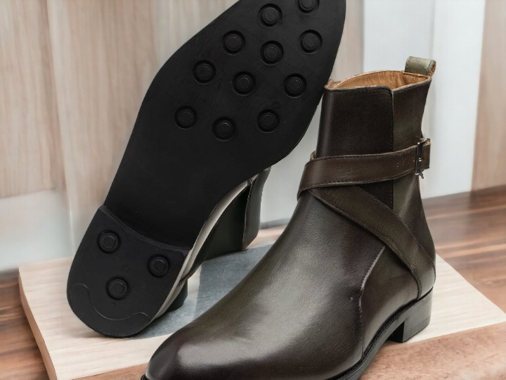 Ankle High Handmade Men's Chocolate Brown Leather Boot, Jodhpurs Boot