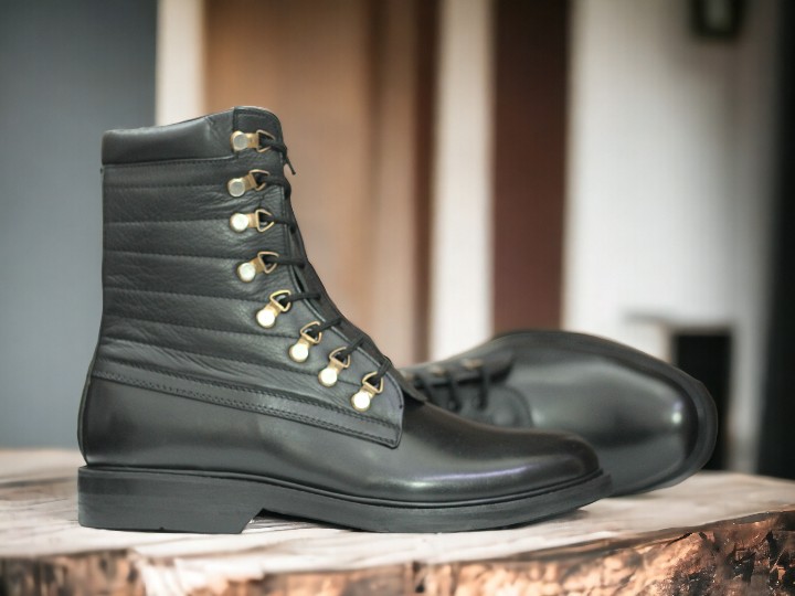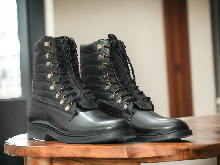 Handmade Men's Black Leather Boot ,Lace Up Ankle High Zipper Boot