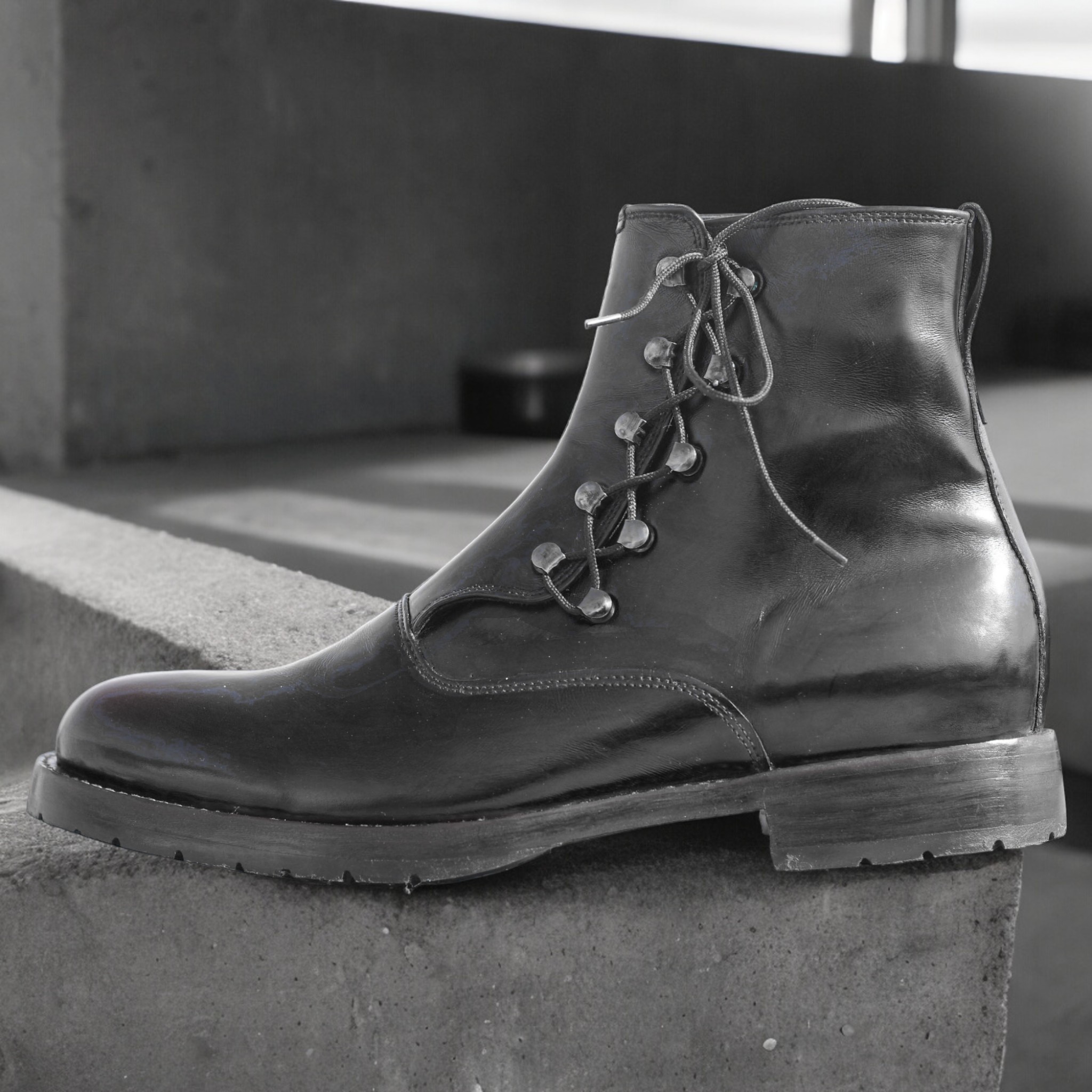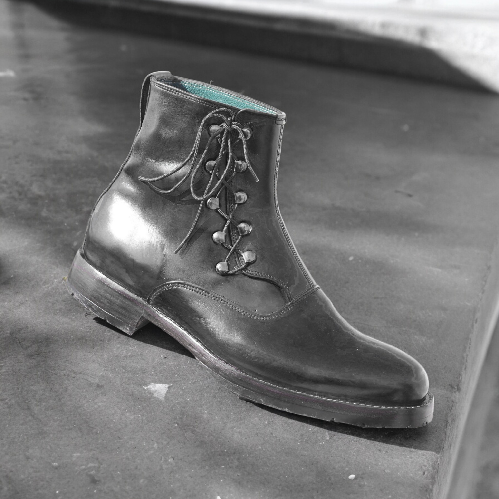 Handmade Men's Black Leather Boot ,Lace Up Ankle High Boot
