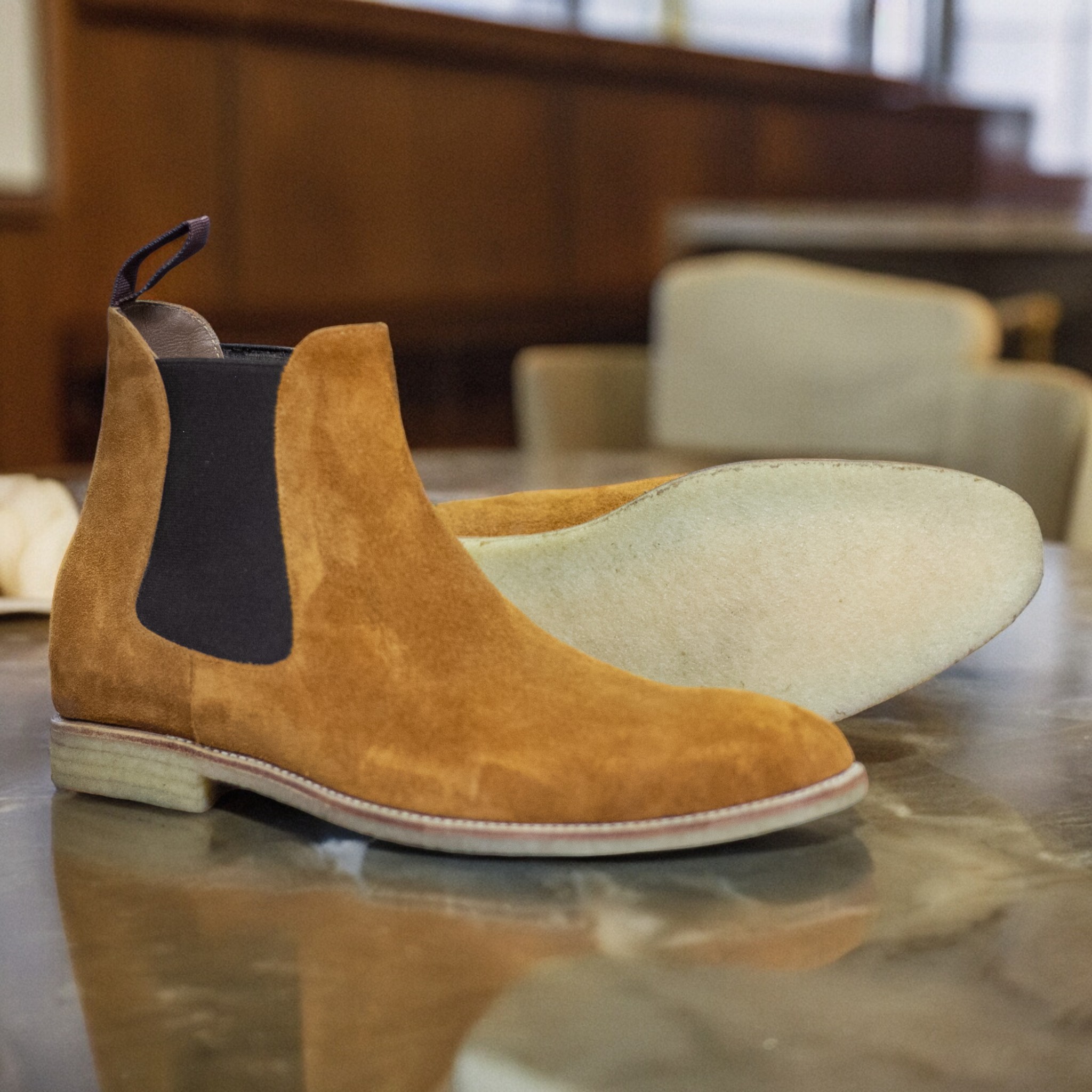 Handmade Men's Mustard Suede Boot ,Ankle High Chelsea Boot