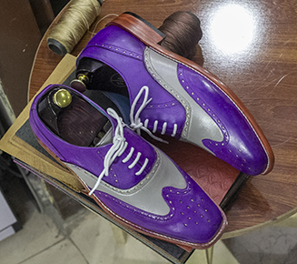 Handmade Men's Wing Tip Shoes Lace Up Brogue Shoes,Purple Gray Leather