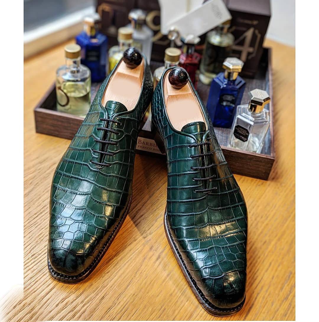 Green Alligator Texture Handmade Spectator Lace Up Shoes For Men's