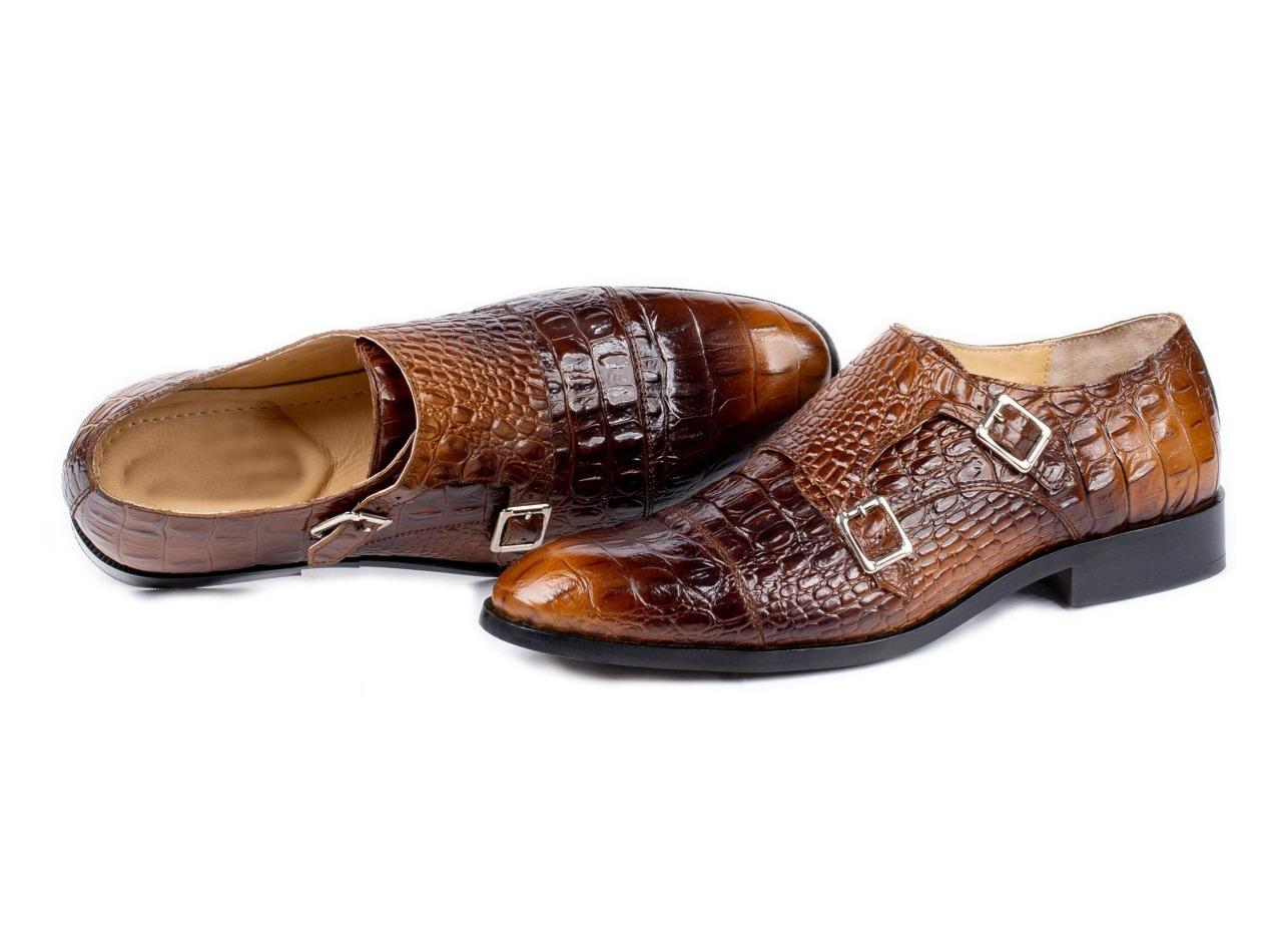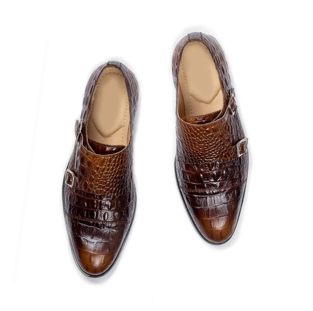 Men's Two Tone Stylish Alligator Texture Handmade Double Buckle Style Shoes
