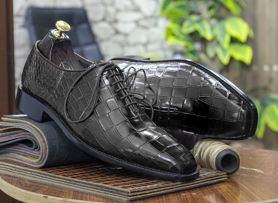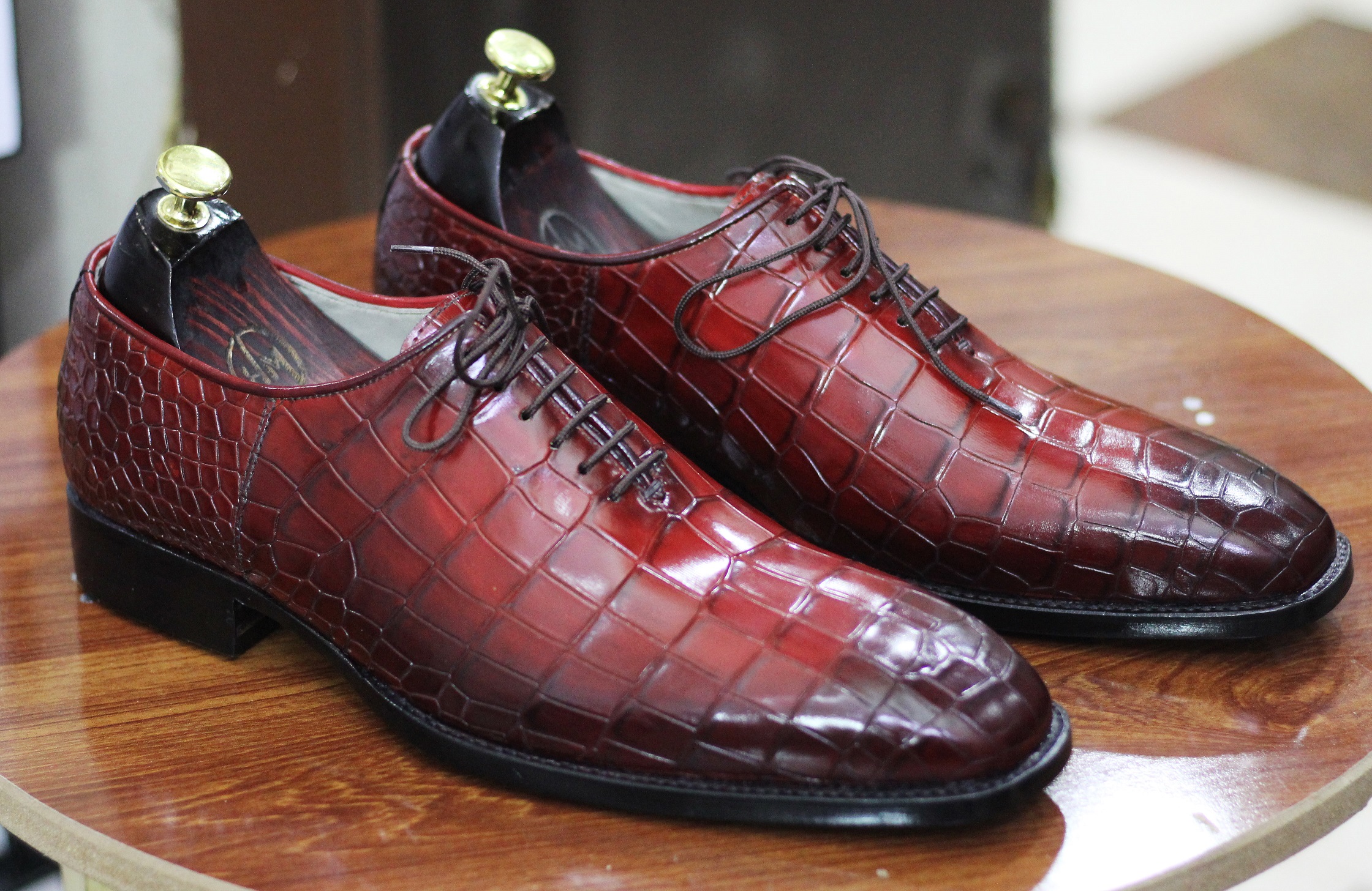 Men's Alligator Skin Texture Leather Lace Up Shoes