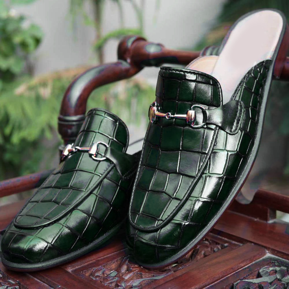 Handmade Men's Green Alligator Skin Texture Monk Straps Leather Shoes