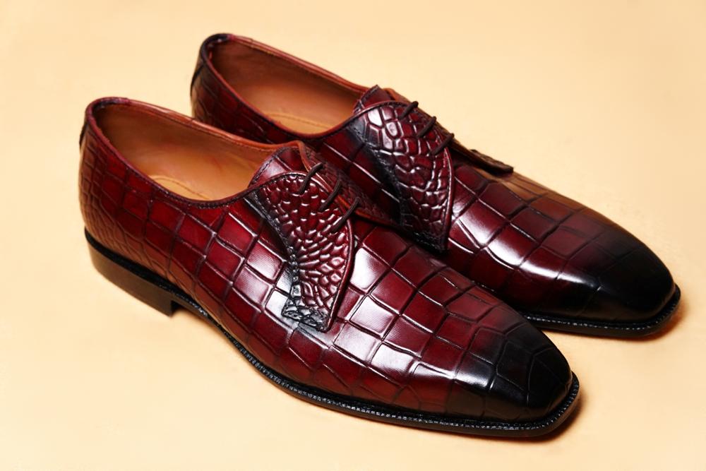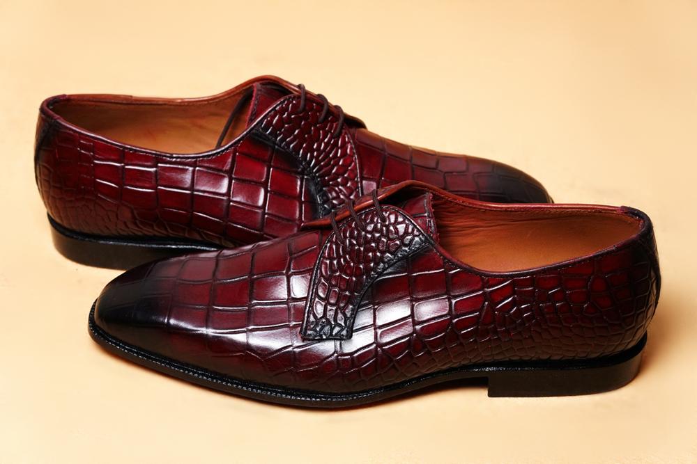 Men's Alligator SKin Burgundy Leather Lace Up Shoes