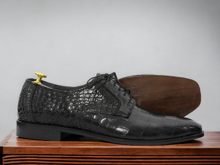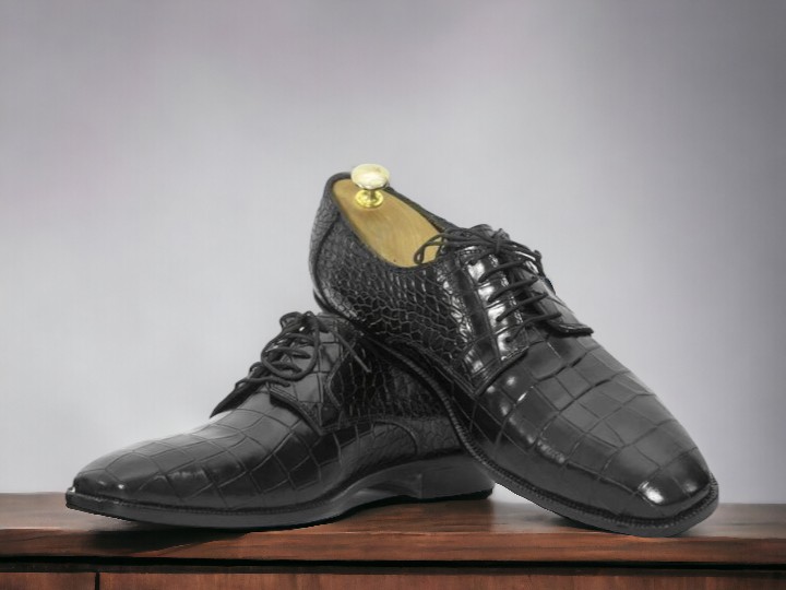 Handmade Men's Black leather shoes ,Alligator Textured Dress Shoes