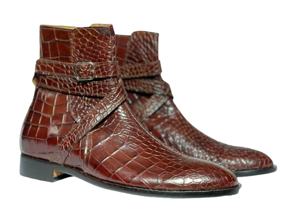 Handmade Brown Jodhpurs Alligator Texture Stylish Party Boot