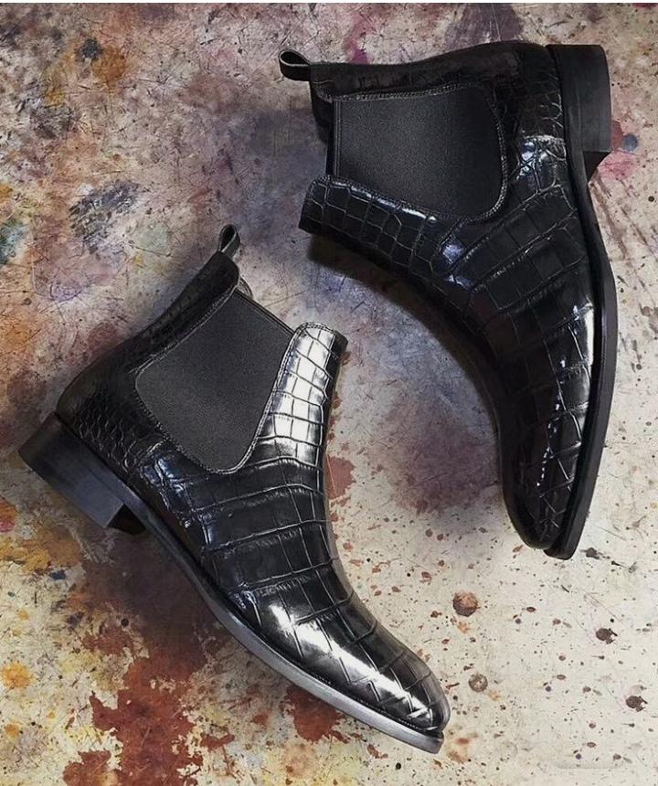 Handmade Men's Black Ankle High Boot, Men's Alligator Leather Chelsea Boot