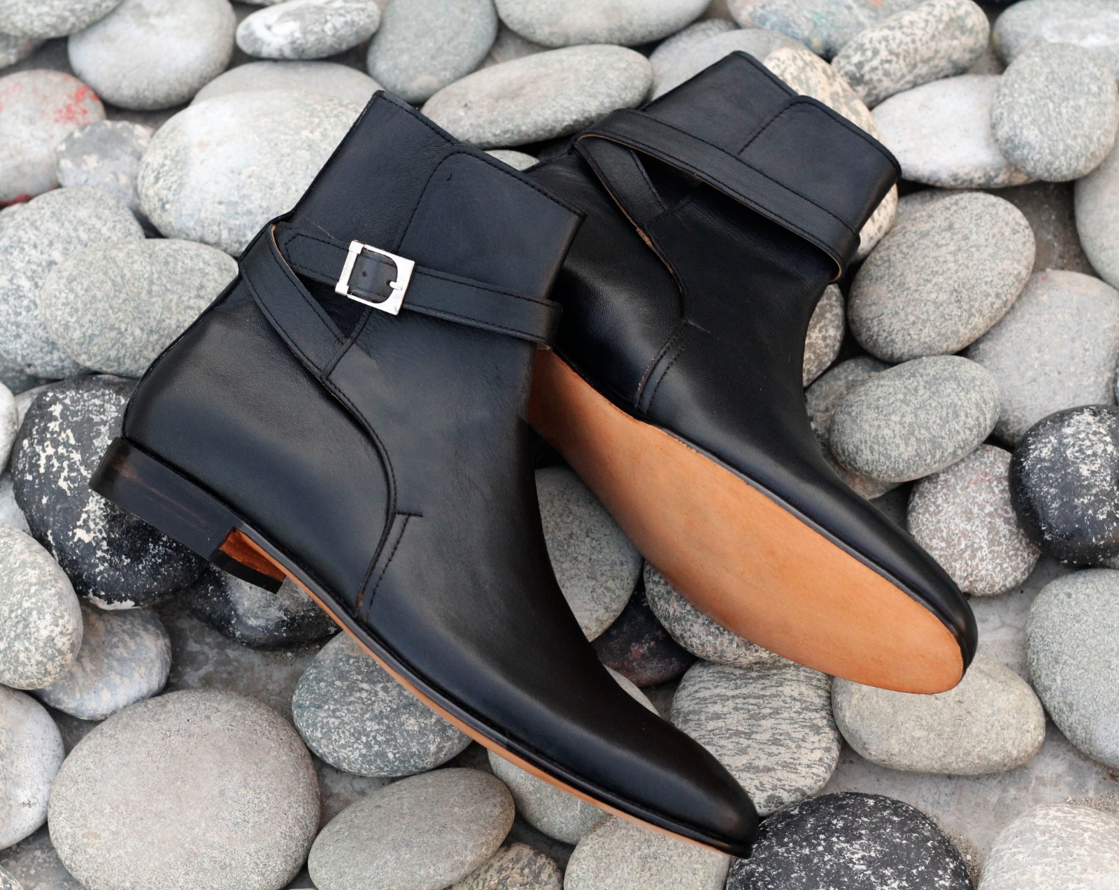 Handmade Men's Black Leather Jodhpur Monk Ankle High Fashion Boots