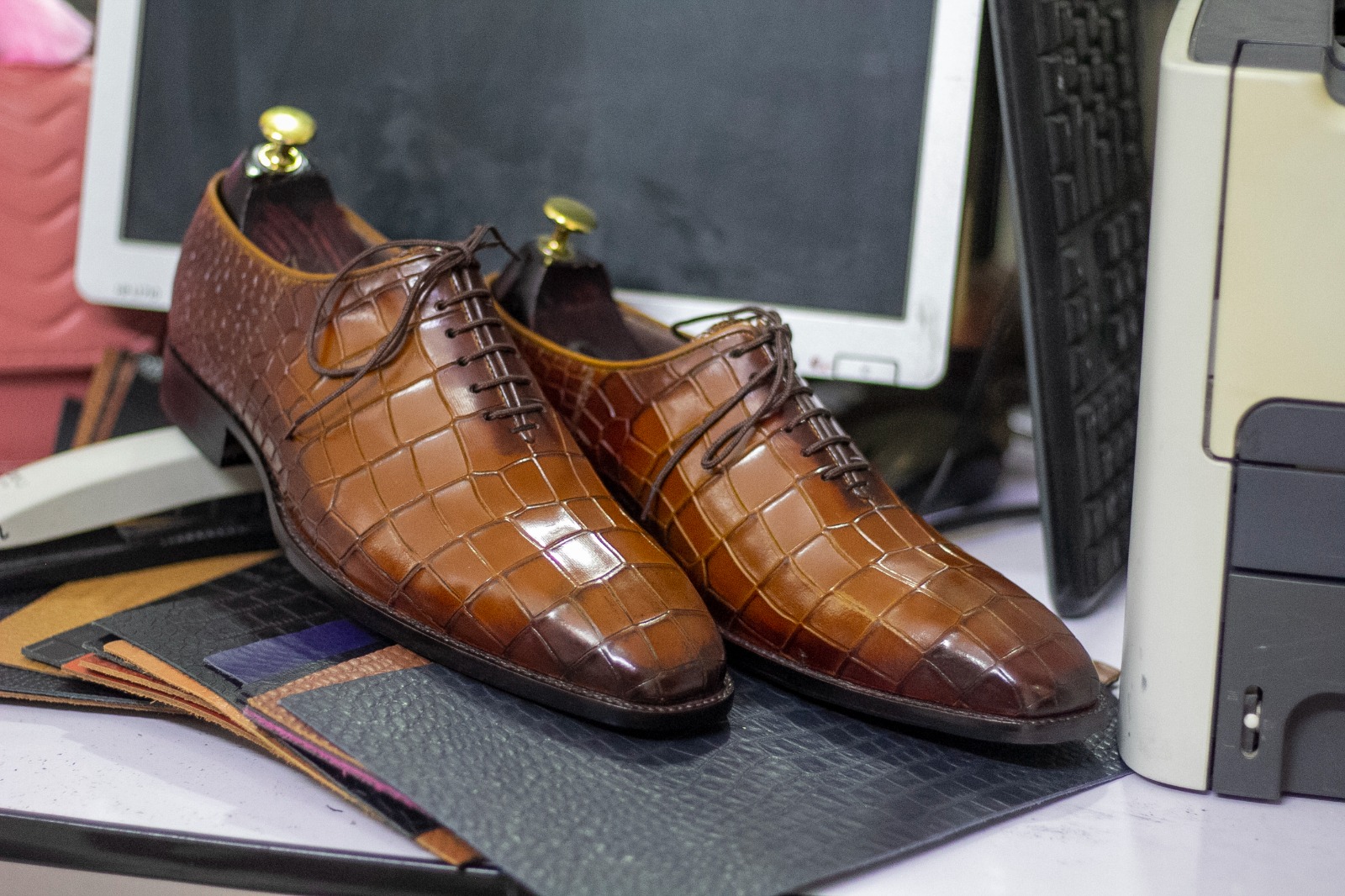 Men's Brown Alligator Print Leather Lace Up Fashion Handmade Office Shoes
