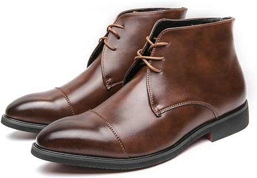 Men's Brown Leather Lace Up Cap Toe Fashion Handmade Ankle Boots