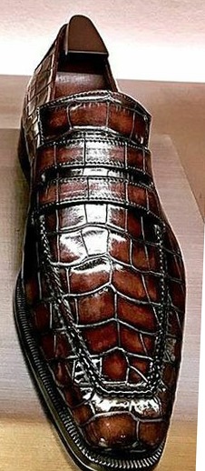 Handmade Men's Brown Alligator Print penny Leather Loafer Shoes