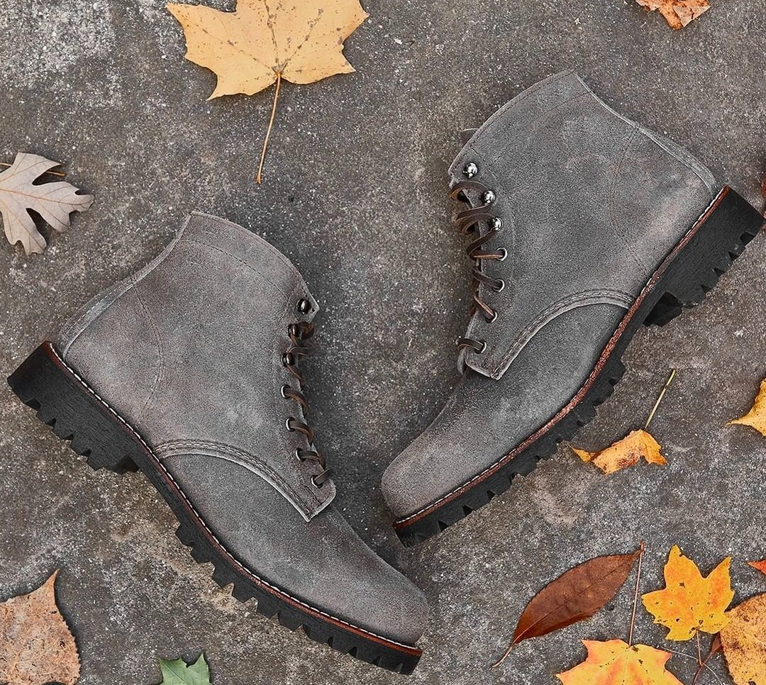 Handmade Men's Gray Suede Lace Up Derby Ankle Boots