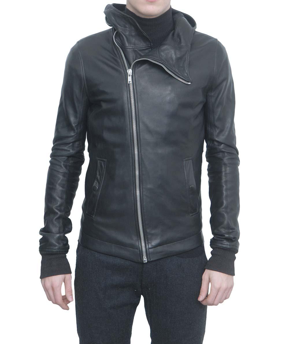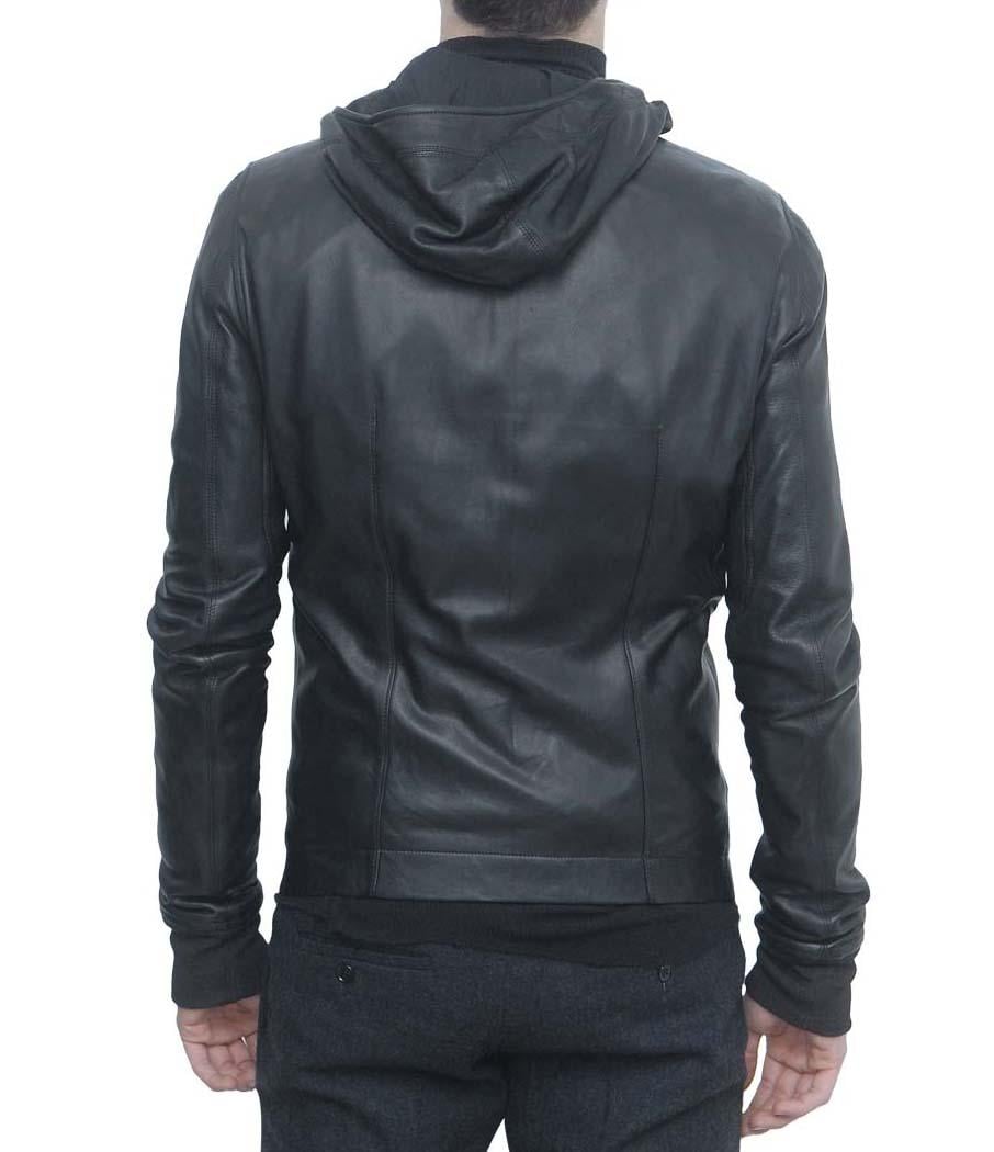 Men Black Leather Bullet Jacket , Men's Leather Jacket Hodded