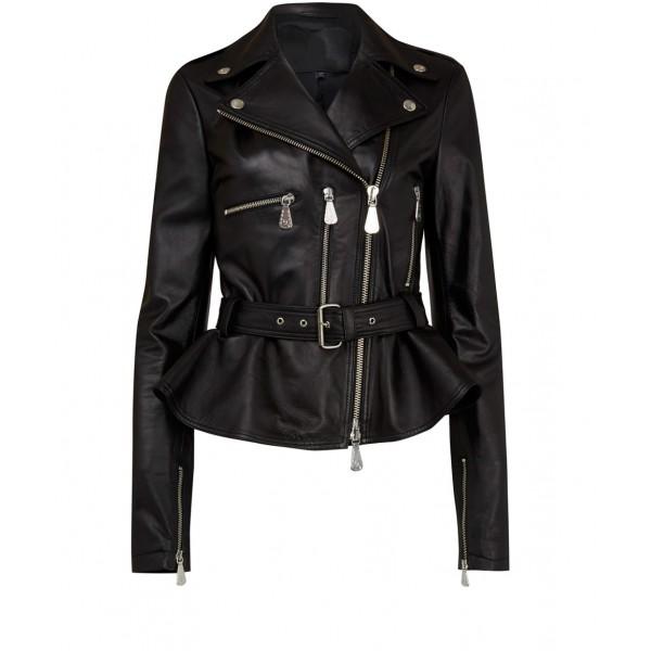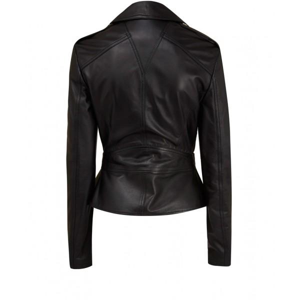 Women Black Belted Leather Fashion Jacket , Women Fashion Style Jacket