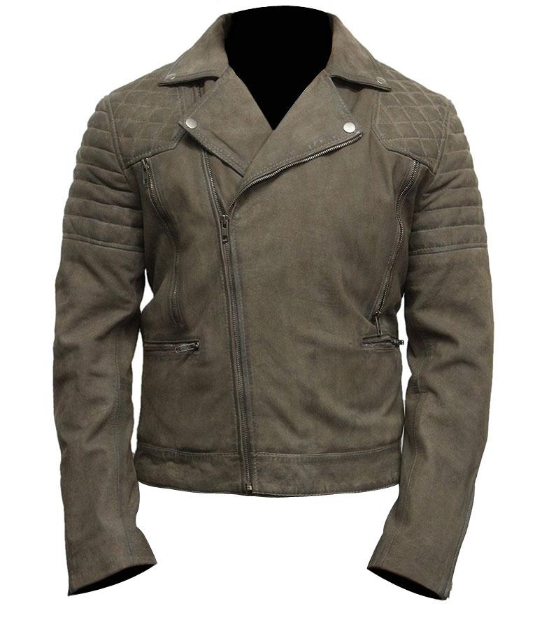 Men's Gray Suede Leather Motorcycle Jacket