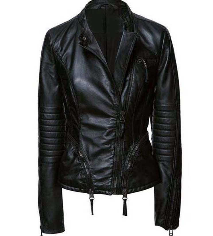 Women Black Leather Jacket, Fashion Leather Zipper Style Women's Jacket