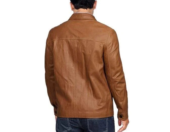 Handmade Men's Long Sleeve Stylish Brown Double Pocket Button Jacket