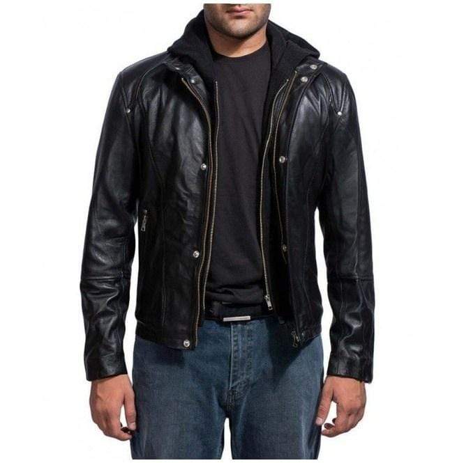 Handmade Men's Black Leather Zipper Pocket Biker Jacket
