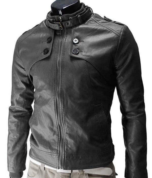 Handmade Men's Slim Fit Black Leather Button Fashion Zipper Jacket